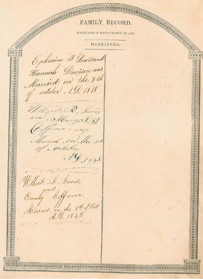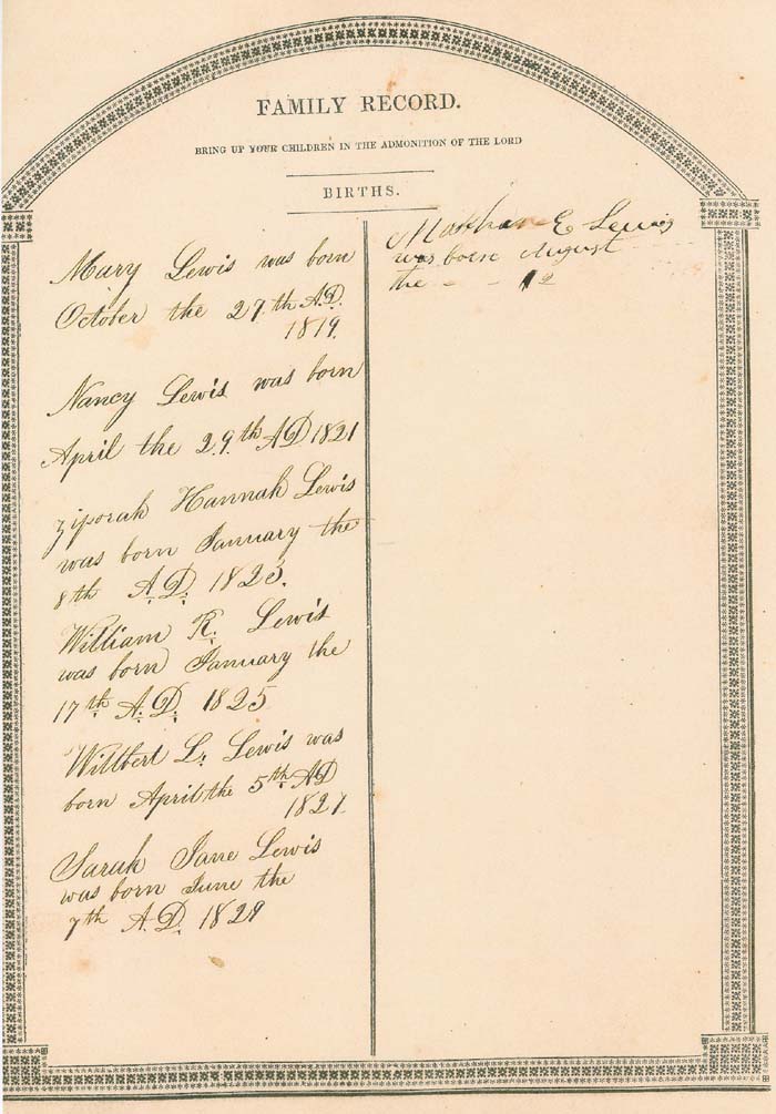 | Picture #1 are pictures from the bible of Ephraim Tyler Lewis and Hannah Davidson. This bible is in the possession of Charlene Lewis. The bibe was published in 1841, and I believe that the information must have been provided by Hannah Davidson Lewis. After her death, a few entries were entered by a second person. |