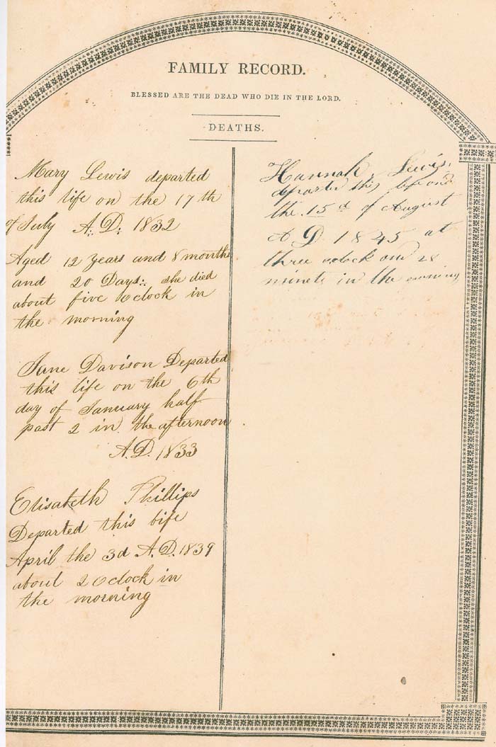 | Picture #1 are pictures from the bible of Ephraim Tyler Lewis and Hannah Davidson. This bible is in the possession of Charlene Lewis. The bibe was published in 1841, and I believe that the information must have been provided by Hannah Davidson Lewis. After her death, a few entries were entered by a second person. |