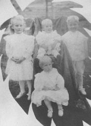 | Picture #3 of is a photograph of the four eldest children of Patrick Joseph McDermott and Kristiane Mathilde Amundsen. The photo was taken about 1909 or 1910, probably in Casper, Wyoming where Patrick was herding sheep. Those in the picture are as follows: Standing, from left to right, is Margaret Signora (1902); Esther Violet (1908); and Joseph Martin (1904). Sitting is Ethel Florence (1906). The original is in the possession of Hazel McDermott. |