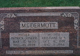 | Picture #1 is a photo of Patrick Joseph McDermott. The original is in the possession of Hazel McDermott, Daughter of Patrick & Kristiane. The photo was probably taken about 1901, perhaps in relation to his marriage. Patrick would have been age 36. |