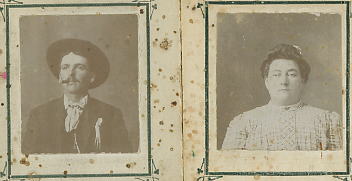 | Picture #13 is a picture of Ellis Howard Davis and Sarah Bernice Mohler, daughter of Peter Mohler and Rueann Lanphear. The pictures are from small 1 1/4" by 1 1/4" photos pasted on small 2" by 2 1/2" cardboard backings. |