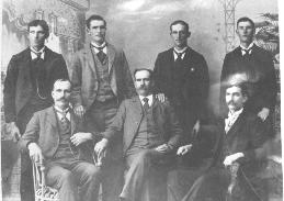| Picture #7 is a picture of the seven Sons of Thomas S. McDonald and Susan Good. The picture was taken at Gasberg Studio, Ogden, Utah, about 1796. Top row from left to right is: Julius Clarence (1876-1905); John Walter (1871-1957); Albert Calvin (1866-1929); & Clinton Delmer (1878-1964). The bottom row from left to right is: James Henry (1857-1934); William Wesley (1855-1928); & Charles Arthur (1864-1953). This picture was in the possession of the descendants of William Wesley McDonald. |