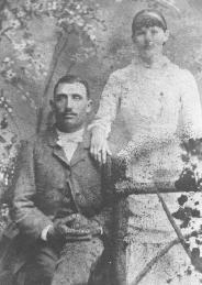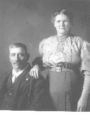 | Picture #7 is a photo of Andrew Jackson Mohler and Elizabeth Ann Stiles. The photo was taken in 1885, probably at their wedding or shortly before or after. Andrew was age 22 and Elizabeth, age 19. The wedding took place at the home of Elizabeth's Mother, Sarah Jane Lewis Stiles, in Fairfield, Jefferson, Iowa. A copy of the photo came from a negative in the possession of Carol Mohler Gifford. The original may have been a cabinet card. |
