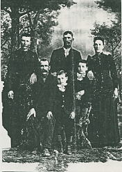 | Picture #5 is a picture of the family of Mahlon Heston and Harriett Stiles. The photo is labeled "Briggs, W. Corner Square, Fairfield, Iowa". Top row is Charles, James, Harriet; Bottom row is Mahlon, Luther, & Ernest. The picture was probably taken about 1890. This is from a xerox copy of the originial in the possession of Vera Davis. |