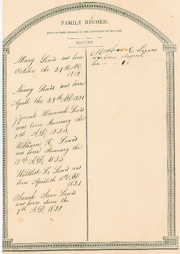 | Picture #10 is a copy of one of the pages from the Ephraim T. Lewis Bible. The bible shows the date of birth for Sarah Jane, as June the 7th 1829. The bible is in the possession of Charlene Lewis of Prospect, Kentucky. |