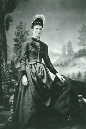| Picture #3 of Thomas S. McDonald, Susan Good, and their daughter Violet Belle McDonald was also taken about 1888. This picture was taken from a 4" x 6" Cabinet Card. It was evidently a reprint of an original tin type. This is evident from the fact that the items in the background of the picture are reversed from those in #1 and #2 above. The bottom of the picture is identified by "Rich, Sauk Centre, Minn", probably the photo studio that reproduced the photo from the originial tin type. This picture was in the possession of the descendants of William Wesley McDonald, son of Thomas S. McDonald and Susan Good. |