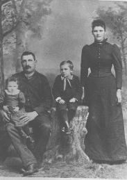 | Picture #8 is a picture of Andrew Jackson Mohler, Elizabeth Ann Stiles and their two eldest children, namely Louis Edgar Mohler and Laura Gertrude Mohler. The photo was evidently taken in about 1891 as Laura Gertrude looks to be about age 1. A copy of the photo came from a negative in the possession of Carol Gifford. The orignial may have been from a cabinet card. The photo was probably taken in Ottumwa, Wapello, Iowa. |