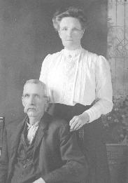| Picture #7 is a photo of Andrew Jackson Mohler and Elizabeth Ann Stiles. The photo was taken in 1885, probably at their wedding or shortly before or after. Andrew was age 22 and Elizabeth, age 19. The wedding took place at the home of Elizabeth's Mother, Sarah Jane Lewis Stiles, in Fairfield, Jefferson, Iowa. A copy of the photo came from a negative in the possession of Carol Mohler Gifford. The original may have been a cabinet card. |